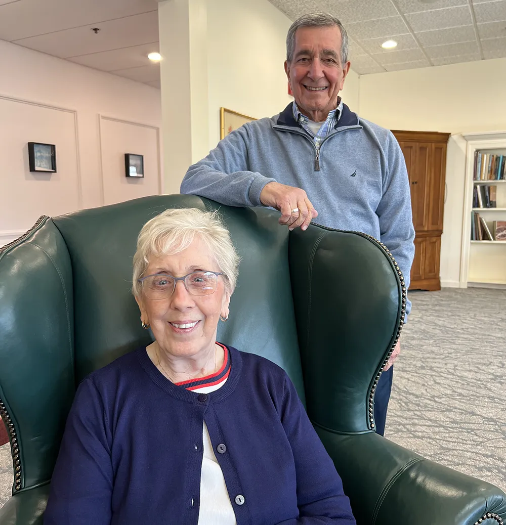 “Everything is so convenient here,” said Lynne. “I can do my PT right in the Health Center, and George doesn’t have to drive me anywhere. I just walk to the Ace of Hearts room to play cards three times a week, and we go to Wilson Hall to enjoy the music entertainment. George has been elected to the Resident Council so he’s very busy with that, and he also enjoys the weekly cocktail hour to visit with new friends.”